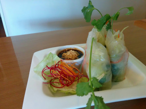 We were sat by the hostess/bartender and she took our drink order. First impressions good so far. Then another girl came up started mumbling about just two then asked for our drink orders, when we said they were already taken she mumbled then walked away. Bartender/hostess girl served drinks and took our food orders. She was pleasant and helpful with suggestions. Appetizers came quickly, spring rolls were delicious. SO ordered the Tom Kha tasted spoiled and rotten.. kept our hopes up for entrees.. my seafood fried rice was sickly sweet and the "seafood" was inedible.. SOs vegetable curry was bland and only seasoned with an insane amount of black pepper. Was not enjoyable at all..mumbling waitress returned with wrong drink refills.. asked for check and left! tl;dr Service was lacking and food was awful!