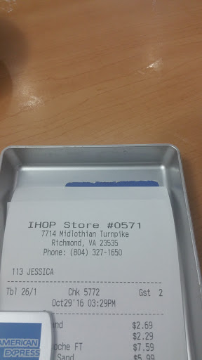 Awesome service by our server, Quasean. Food is typical IHOP which would rate a 2 or 3 out of 5; all the rest of the 5 are due to our server. If you go ask to be seated in his section - he is friendly and attentive we never needed to look for him he was right there whenever we needed with a smile and great attitude.