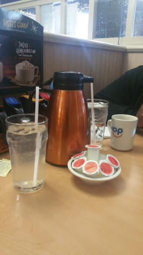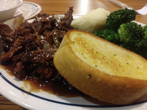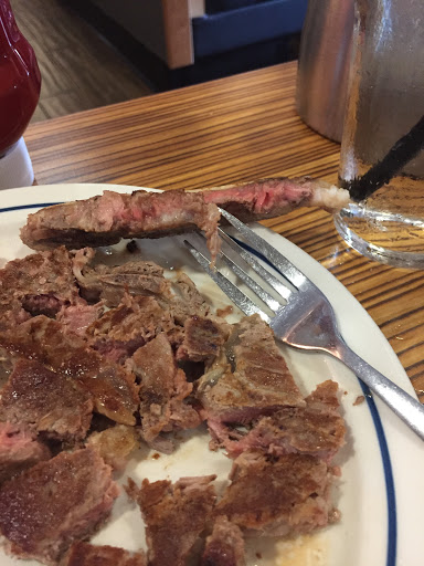 Food was cold, simple grilled pork chops were dry as wood. I even had a manager to take them away and have them replaced with more grilled pork chops and they were still dry/overcooked. The thing about it is it was Fathers Day so the place was packed so you would think the last thing they had time to do was overcook simple uncomplicated grilled pork chops. Even my wifes French toast and eggs were cold. Go figure... you would think being that crowded you would want food to get out hot! 3rd and forth visit that this has happened. The first time I went there my wife and I got there just when they opened so we were the only customers there and my food still came out dry and cold. So its not like I didnt give them a chance. Good luck.