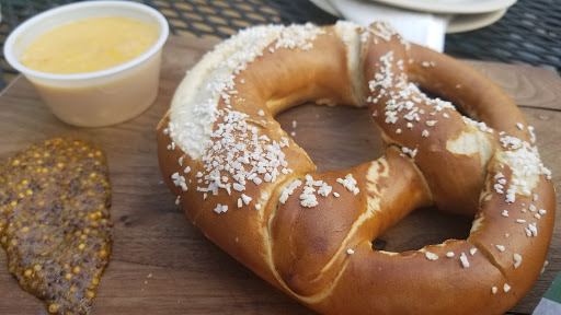 Arrived at 7:05pm, with a party of four. Asked for a table under the awning as it was expected to rain. Were told we couldnt because it was "too full." Weird, considering there were 3 empty tables. Despite being sat elsewhere, we werent even acknowledged til 7:45 pm. Multiple servers passing our table. Apparently, someone before us pissed her off and it was obvious, given that she scowled at us before walking over then proceeded to give us an attitude. Already knowing how this evening will pan out, for some reason we decided to stay. 3 beers and the peach tea lemonade were brought out at 8-ish. By that time it was suggested that we move inside do to rain, which is fair and I actually appreciated that we got another table so quick. So before moving inside we placed our orders with 2 pretzels to split between the party, the pretzels came out fairly quickly but we didnt see the entrees til 9-ish. 2 hours into this debacle, were finally eating. The waitress mustve been busy with both outside and inside tables considering she didnt stop by once and we had to flag down other wait staff passing by for refills. Finally ready to leave, we asked for seperate checks, 3 total. The waitress ended up charging our friends for our entrees giving them a $70 total, so we had to find her again and change it. The irony of needing a drink after leaving a brewery is laughable to say the least.