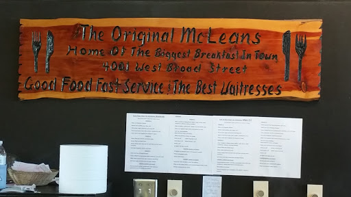 We eat at McLeans every Sunday for brunch and have fallen in love with the place. Great service, great food, huge portions, and friendly people. They are now 100% smoke-free, so the seating is a lot more relaxed. Definitely worth a try for a great breakfast.