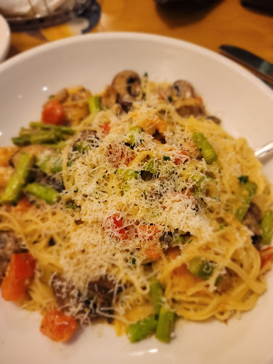 Rush rush terrible service . Requested not to be rushed . Not to serve dinner before they cleared Appetizers and salad plates . Server disregarded . Couldnt enjoy my cocktail . Basically had my soup salad and dinner at the same time . Table was a big mess . And if you order spaghetti the servers look at you like you are a cheapskate even though i had cocktails and desserts . Do yourself a favor there are a lot of good restaurants in Short ,pump . Unless you are in a big hurry , dont go to Olive garden to relax and enjoy yourself.