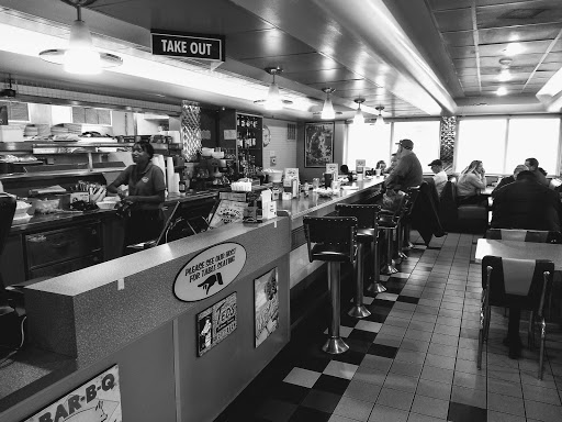 I stopped in this place on a whim one day passing by and its become a regular place for me whenever Im in the area. Its a classic American diner with chrome and old movie posters on the wall, great fare, and friendly fast service. Ive walked in here many times with only 20 minutes to spare and still had plenty of time to eat and everything. Servers are very friendly and the kitchen is very fast. I usually just get eggs, bacon, and coffee but the specials I have had have all been great reliable american food. If youre in the area looking for a quick bite, stop in and relax.
