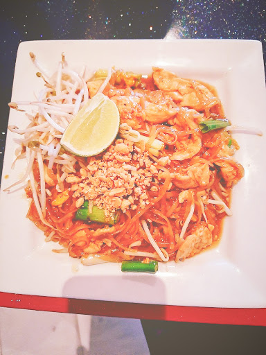 Sevice was prompt upon seating and the staff was friendly. I ordered the bankok chicken which was reasonably tasty however the dish felt lukewarm at best and the consistency seemed as if it had been sitting in the window for the 30 minutes it took for our meals to arrive. My wife had the pad thai which looked appetizing but turned out to only carry the flavor of the oil it was saturated in. The service after meal delivery dropped off and we sat for some time before we were able to get our check. Quite dissapointing considering its cary town location and generally good reviews.