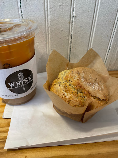 Whisk is a very cute cafe! I went with a friend for a coffee date and was beyond disappointed. It was my first time there and customer service was lacking. She pretty much just stared at us and waited for us to place an order, no hello...welcome to Whisk...how can I help you...ready to order?! She did get nicer as we went along and even suggested I try an iced vanilla latte and a coffee crunch muffin. The latte tasted like a ton of milk and a splash of coffee...there was no vanilla taste at all. And I dont even know where to begin with the muffin. It was dry and contained a blackish brown almost burnt looking syrup on the bottom and throughout the center. I have had better muffins from the grocery store. My friend got a regular coffee and a peach raspberry muffin, which was also very basic! I went there with high hopes based on previous reviews and instead I wasted $16. If you are looking for over priced basic pastries Whisk is the place to go.