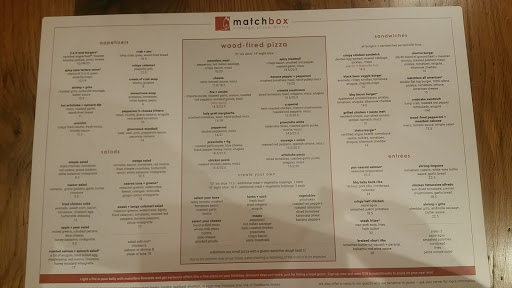 Went to Matchbox early evening during Happy Hour. The food was ok. The food was fresh but the spicing was rather underwhelming. The onion straws were delicious.The personnel were friendly. Decor is farmer-industrial chic. Given the price, I expected a little more.