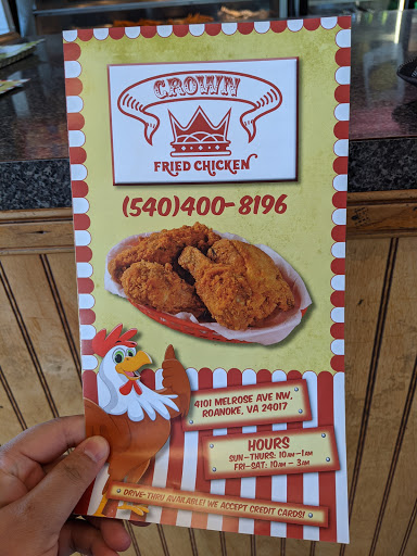 I live near Melrose ave in Roanoke. This Crown Fried Chicken sure beats Popeyes located on the same street. Let me tell you Ive done a comparison. The chicken here is much better and tastes better! This Crown place also has much better and professional staff!