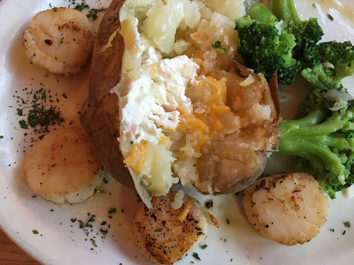 My "seared" scallops werent seared the least bit, they had no color to them at all, a couple of them were raw also. They were also sliced in half to make it look like there were more. Never, ever should you slice a scallop like that, its ridiculous. The broccoli was bland except for the ton of pepper it had on it. Mashed potatoes were over salted. I was embarrassed to have to eat it and was embarrassed that the very sweet waitress had to serve it to me. $16.95 down the drain. Get someone who knows how to cook in there!