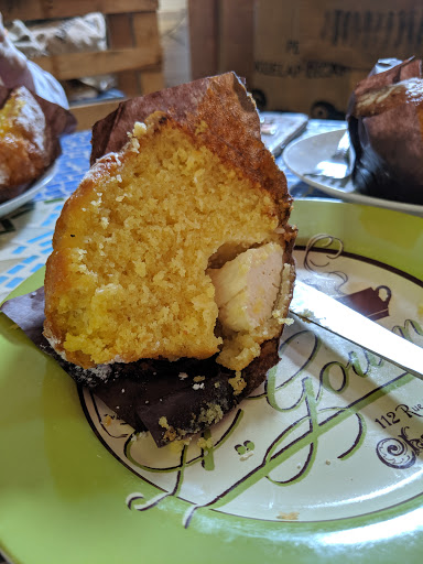 Delish Lavender Vanilla latte! I walked in around 10 AM after dropping my car off for service. The place looks small when you first walk in but there is a whole seating area behind the cashier. I tried a lavender vanilla latte based upon the cute pic hanging on the wall with a chocolate croissant. The latte was amazing! A little sweet but the lavender balanced it out perfectly. The space is pretty unique. There are demos tables as well as small tables. The owner was so nice - it was packed but she came over to make sure I knew there was a space upstairs with room for me and my laptop. Staff were friendly (not sure who other reviewers met when they were there)... I would def. go there again when I am in the area.