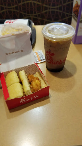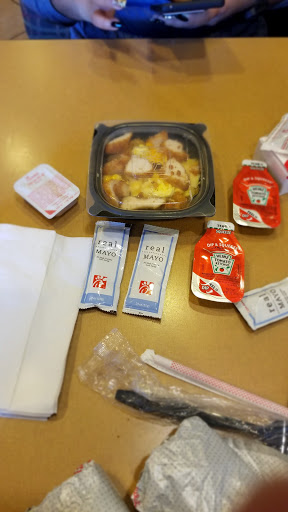 Food is good. I come here regularly and i can definitely say that service here isnt up to chick-fil-a standards. Dining room hosts have disappeared, meaning you have to beg an already busy employee for anything you need.