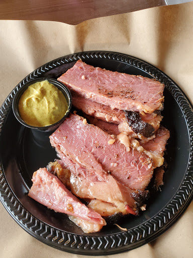 The brisket was awesome. They asked if I wanted dark or light, so I went with dark. There was about 5 or 6 slices, each about 1/2 inch thick with a nice black smokey layer on top. Super tender and juicy, just falling apart. Someone else reviewed the brisket as being bland. I did not have that experience at all. There was a ton of different BBQ Sauces, and they were all pretty good. My favorite was the Smokey Mountain. I would come back for the brisket in a heartbeat! Also, the staff was very nice and helpful.