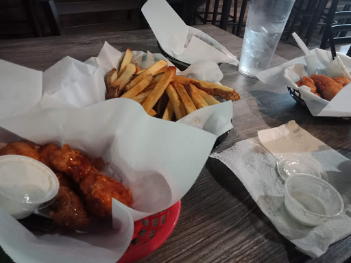 this place is awesome service and food was not what we had expected the name sounded like carryout place but it was a great sports bar like atmosphere with best tasting sauce give this one a try youll love it. we did