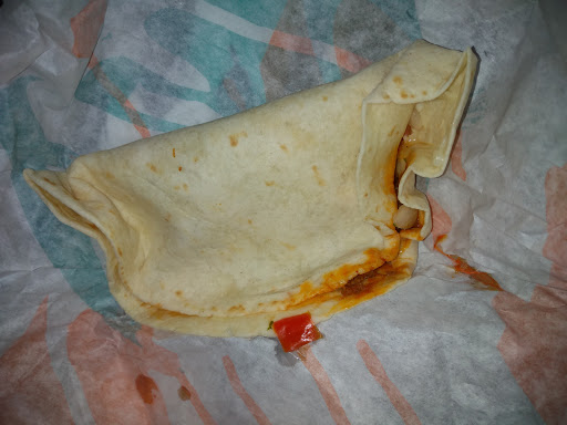 11:29pm 6/10/17-Sat. Night we go for some comfort food. #We think! #1 combo9 $5.99 1 Stl Quesadilla ,no cream jalapeno S. $3.79 ##IT HAD THE CREAM JALAPENO S ON IT 1 Bean Burrito $1.29 No red sauce No onions ADD 3 CHEESE $ 0.49 ADD BACCON $0.50 ADD STEAK $1.69 ADD CHICKEN $1.40 # IT HAD NO STEAK ONT IT # VERY LITTLE CHICKEN ON IT. 1 Chalupa Chk Sup $3.29 No tomato # ADD STEAK! $1.69 VERY LITTLE WAS ON IT! 1 Nacho Supreme $2.79 No tomato #THE MEAT WAS COLD IT WAS THE WORST EVER. 2 APPLE EMPANADA $2.00 BURN CHUNKS ALL OVER THEM! WITH ONE BIG BURN ALL THE WAY THROUGH IT. WAST OF OUR MONEY. $27.24 THIS PLACE SUCKED!