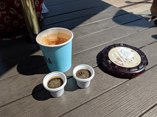 Excellent Cuban style coffee and foods (and some alcohols) and a great atmosphere. Outdoor (with a fire pit), covered outdoor, and indoor seating.
