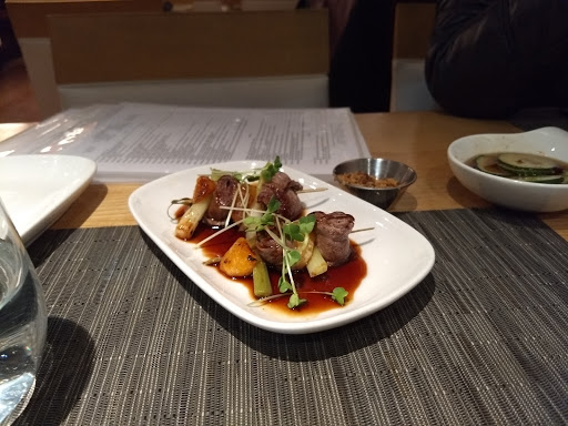 I love Asian food and was looking forward to trying this place. I was surprised at how small the servings were (Dont get the duck skewers unless you want to pay $10 for a few pieces of duck). I ordered three dishes and they all had the same overwhelming flavors. By the third dish I felt like I was eating the same thing over and over again and couldnt distinguish between the dish. Several hours after dining here, I felt really nauseous and sick. I had diarrhea and then vomited 2-3 times. I saw the food I ate come right out. I called the restaurant after this incident and informed the Chef. He was cooperative and took down details and told me hed call me back the following day but never did. Maybe I ordered a bad combination of dishes or something, but I normally enjoy this kind of food. They had good food presentation and nice interior but I personally will not be coming back because of 1) getting sick from this restaurant potentially 2) serving sizes not being worth the money 3) same overwhelming flavors in the food.