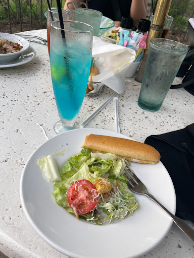 I have a few problems with this Olive Garden. Its a beautiful Olive Garden by the water with outdoor seating with a lovely view. However, the customer service was terrible. The hostess led my boyfriend and I to our table outside. She maneuvered between a chair that she could barley get past and didnt even move it out of the way. She just kept walking. We couldnt get through. She didnt come back, gave us a dirty look when she sat us and said nothing. No have a nice dinner or someone will be right with you, nothing. She was extremley rude. Next is that a kid puked in the middle of the lobby. No one came and cleaned it up for 10mins if not longer. Also, there was no one standing by it or a sign. It was just left there. I actually never saw it got cleaned up. Lastly, the bathroom trash can was overflowing with paper towels to the point of where I could not even get to the sinl. They were on the floor counters and even in the sink. I love Olive Garden food but this was all just a bit much.