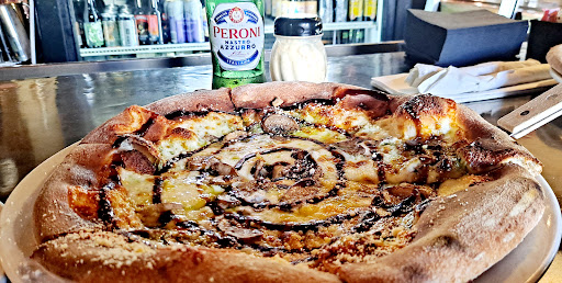 This place was fantastic and not "just" a pizza place! Their menu is very diverse and includes a good wine list. We had the garlic bread(sticks) to start and then two 10" pies. All were fantastic. Breadsticks were great with just a hint of oil and seasoning, versus other places in which the garlic flavoring overpowers. Pizza was very good - sauce on the sweet side, which was a nice surprise. What I like best about their pizza was that it wasnt trying to imitate a "style." It wasnt New York or Chicago "style." It was simply good dough, good sauce, good toppings, cooked in a brick oven. And that worked!