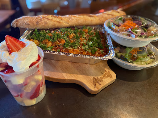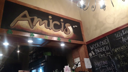 we enjoyed our evening at Amicis we shared a spinach salad w/ hot bacon dressing, and a lovely goat cheese, chicken pizza. we added bacon and olives. we also had a great bottle of wine from Chili for 15$ we will be going back delicious! !!!! loved it!!!