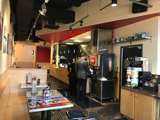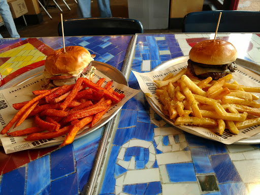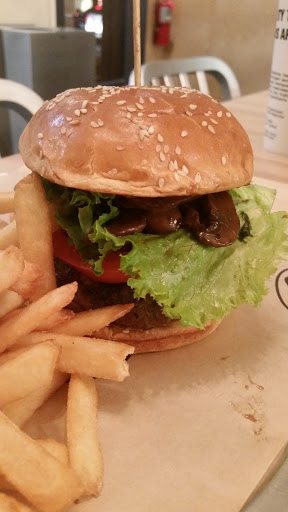 More of a hip-modern burger joint. A decent selection of burgers, some with a nice variety of toppings. Nice atmosphere, busy because of the mall. The prices are a bit steep though.