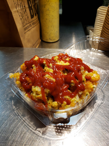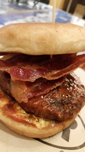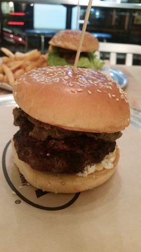 Went here to pick up 3 burgers for a taste test with some friends between Five guys, elevation burger, shake shack and BGR here. The wait was LONG. Gave me a pager and everything for when my order was ready, for take out. BUT, it tasted amazing. Was cooked to medium perfectly and the burger its self was quite good. It had that extra grilled taste, I guess for being flame broiled or something. Could have used more of the sauce which I think they called Mojo sauce. It won our burger taste test. It was about 3$ more than any other burger so be aware that its pricey and takes a while to cook. Good burger tho