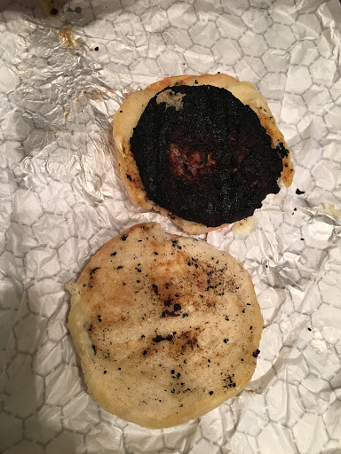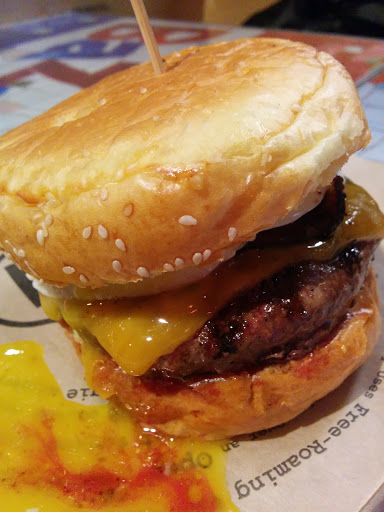 The good: really good tasting flame grilled patty. The bad: I ordered 3 burgers for friends. The order person said, "what kind of cheese do you want?" 2 of us wanted American 1 wanted swiss. Surprise! we all got swiss. 2nd, surprise, they charged us .99 each for a slice of cheese. Pretty sure there was no "cheese burger" on the menu. So perhaps training your staff to say, "itll be .99 extra if you want cheese". Oh, and get the kind of cheese right. Finally, the bread was cold. Not freezing cold but hard and cold like it was in the fridge. Look, I dont want a steamy bun but at least a room temp bun that I can usually get at McD or BK.