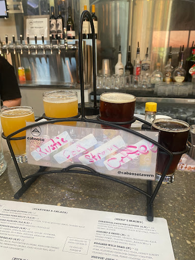 Caboose is a lovely stop along the W&OD trail with ample bicycle and rather limited vehicular parking. Between a third and a half of their evening clientele were on bicycles when I went in, the rest mostly in sharp business casual. I felt more out of place in motorcycle gear than I expected to at a brewery/tasting room. The aesthetic was a sort of rustic industrial; most surfaces were finished wood with dark, flat metal pipes for adornment. The atmosphere seemed geared for people too old to call themselves hipsters but too young to be yuppies. It was not what I was expecting to find at back end of Viennas light industrial district. When I walked in alone, the hostess smiled and waved me toward the bar, where I waited a few minutes for a bartender to be free. The standing area was rather busy and the small downstairs seating area was completely full, but the upstairs seating was roped off. I ordered a "hoppy" flight of beers and grabbed a sticker before moving to one of the standing bar-like surfaces adorning the bar half of the restaurant. Two of the beers were lackluster, one was good, and the imperial double was the best 9-ish% beer Ive had in recent memory. It was akin to DFH90Minute, slightly less syrupy, with a very smooth finish. A saw a few charcuterie boards in the bar area, which people seemed to be enjoying. The food that came out to the seated areas smelled delicious, and a hooked board along one wall told the (very local) source of each individual ingredient, down to the city/farm in Virginia. I will definitely be returning to try a meal.