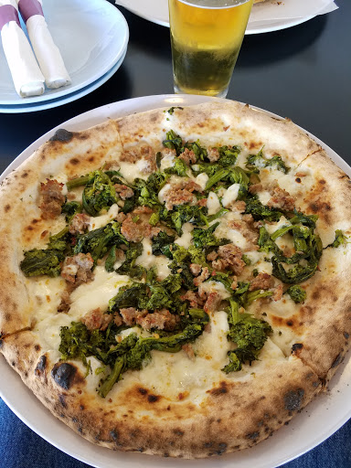 Stopped by for an early dinner. Great service and a nice open space. They have their Italian pizza theme down to a point. The pizzas are thin crust with a little charring on the edges which is typical for that style. We got two pizzas -a Diablo with arugula as an extra topping AND a pesto pizza with chicken. The crust was very tasty and the toppings were great. I did feel that the pesto was a little salty but overall a great pizza place.