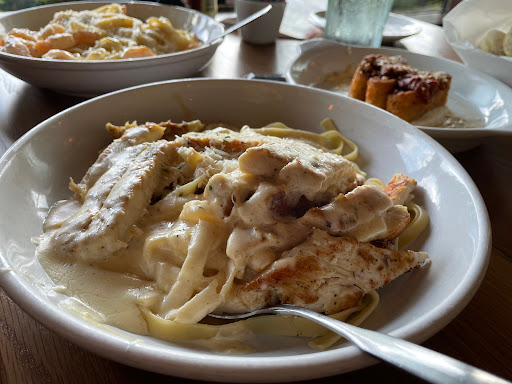 My friends and I waited about 25 minutes to be seated, but it was no problem because we had a very nice experience at the bar. Our waiter was great with suggestions, and was super fast delivering the breadsticks and salad, as well as drink refills. I had a Burritto which was a decent size portion that included unique flavors. The classic Olive Garden salad was great and believe me you can get filled up just eating the sald and breadsticks alone. The price for everything was very reasonable, and we could not have been happier. This Olive Garden was exactly what we were looking for. The people who actually delivered the food to our table was attentive as well. I know for sure that my friends and I will be back to this location soon.