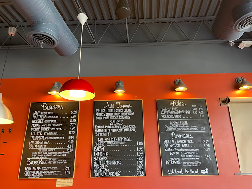 Have eaten here twice in the last week - its by far the best burger place in NoVa. My family & I ate in during our first visit here; the place sources their burger meat from a local farm and offers special in-house sauces as condiments:chimichuri, red Thai curry mayo, cherry Cola BBQ, etc. Their fries are hand-cut potatoes or sweet potatoes, and their beverages (cola, lemonade, root beer, etc.) are unique and all made from sugarcane. They also supply beer, sourced from a local brewery. Check this place out, you wont be disappointed and to eat in if you can. Service is also good, too!