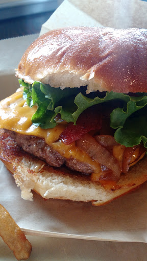 Unfortunately, there seems to be a tremendous lack of quality control. My burger was dry and bland, and the tomato on it was too big for a salad, let alone to stack on top of a burger. My wifes was apparently decent. She described the sweet potato fries as the worst shes ever had, and the regular fries were only half cooked. The worst part, however, was when the kid behind the counter stood and watched as other customers shifted a table so the 95 year old woman who entered would have a place to sit.