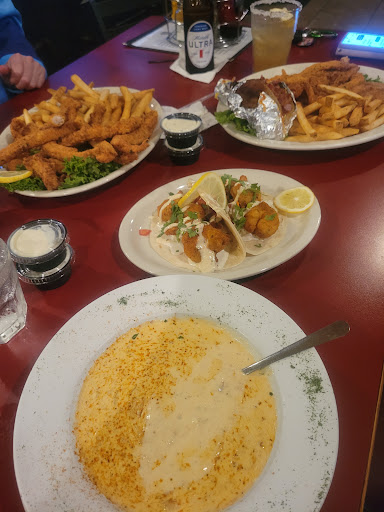 Great lunch specials for $6. I got the buffalo chicken quesadilla which was HUGE. It was not just a half - you got the whole thing and it filled generously. THEY HAVE WONDERFUL RANCH DRESSING! We also tried the crab cake sliders which came with a side of chips. You could upgrade to fries or other options but we chose not to. The chips were seasoned and delicious! We also tried the alligator bites of the regular appetizer menu since this was a new experience for us! Tastes like chewy chicken. It came with a special sauce which was like spicy horseradish. The table next to us had onion rings - they looked amazing! We wished we would have ordered them. Tap beer was COLD. We would def go back as well as recommend this place to others!
