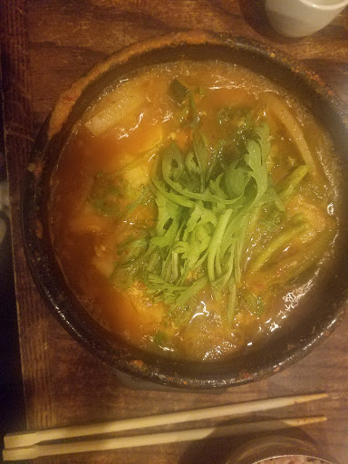 Service here is top-notch! The employees at this restaurant really strive to make the experience a good one. It is clear that they want you to return. The food is also very good. I had the stone dish "bi bim baap." It sizzled as it came out, was cooked well, and presented perfectly. The atmosphere and decor are great. It is a clean establishment and feels very cozy.