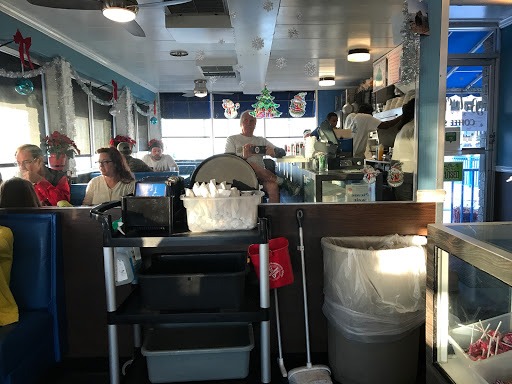 Cozy coffee shop with a few booths and a lunch counter, right on the boardwalk. Mirrors and big windows with wide views of beach keep it bright and roomy-feeling. Ate lunch there three days in a row, to the great satisfaction of us all (2 adults, 3 kids). Basic lunch food (chicken & tuna salad, rueben, BLT, crab cakes, fries, etc.) was consistently fresh, well prepared, good portions. Very friendly attentive service. I didnt eat breakfast here (served until closing at 2:30pm), but they seem to pack them in all morning.