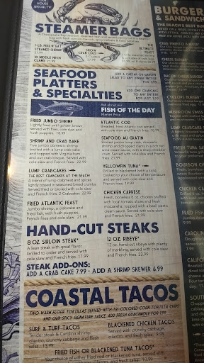 We had the great misfortune to decide on an early dinner after a day at the beach and should have left after the surly hostess told us we had to wait 15 minutes while the tables were being cleared. We stood with our two kids and looked at the 5 cleared empty tables until we were finally seated at one of the empty tables. It was all down-hill from there. The surly waitress seemed clueless about the menu but nothing she could have said would have helped the slop that was served up. I had raw oysters on the half-shell that defined minuscule portions. The shells were there but little else. My wife had charred tuna bites and my daughter ordered a refreshing egg-cup of milk for $3.50! The entrees of fried crap-cakes and roasted ma hi were inedible. The vegetables were stewed beyond taste. The kids had Pizza. One left a crust behind. My wife and I pounced hungrily on it. We left paying over $100 for a thoroughly disastrous meal which prompted me to write my first review ever.