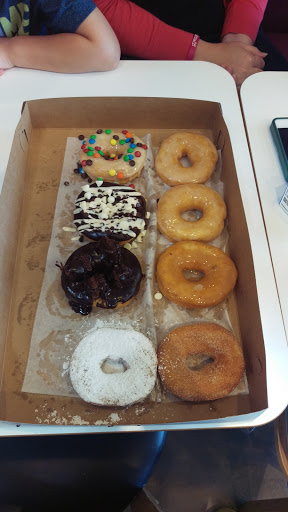 Got our order wrong, donuts tasted awful, and the place did not look very clean. On the bright side the donuts were hot, staff was nice, and they got the donuts out to us fast. The maple bacon donuts bacon was non edible and could not be bitten through. It also did not have toffee bits on it. Another person in our group ordered a chocolate glaze and chocolate sprinkles donut. They gave him white sprinkles. So over all not a good experience.