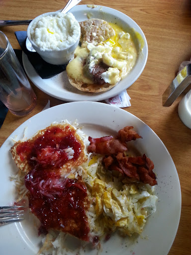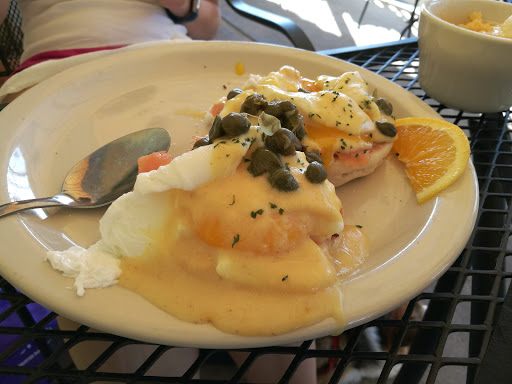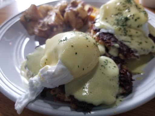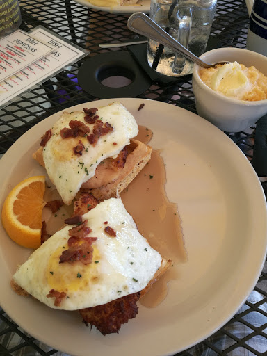 Menu has so many delectable choices that Ill have to go back to try some of the others! I was with a group of ten, and everyone was impressed. My Chix Beach Benedict was out of this world. Choosing grits as my side, I actually brought half of the Benedict home because of the size of the serving. My dish had two full-sized crab cakes, one on each half of the English muffin with prosciutto, egg, and Hollandaise. Yum!