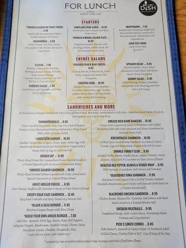 Third visit, tried breakfast, lunch, and now dinner. Each meal was outstanding. The details of our dinner (5/16/2015) include my wife having grilled Flounder and I had the Oyster Dinner. Both were outstanding (clearly 5s). I realize that when one goes out for fresh seafood most of us look for the standard places and forget that seafood is very important to the Swedish people. And, the owner of this place place knows how to do it and that freshness is key.