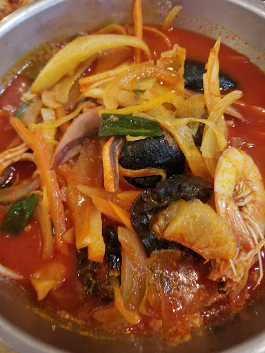 My wife and I ate at Han Woo Ris tonight (20 Mar 2014) and it was a wonderful experience. When you first walk in, the restaurant looks spartan, but what it lacks in atmosphere it makes up for in the quality and quantity of the food. We ordered a Korean style vegetable and seafood pancake for an appetizer and then we both had soups for our main meals. The portions were monsterous, probably the biggest bowls Ive ever seen in a restaurant, and there were plenty of noodles, fish, seafood, and vegetables to stuff me to the gills. Im 65" and weigh about 225, so it usually takes a lot to fill me up but I was pabalo when it was time to leave. The waitress was very helpful, we didnt have to wait long for our food, and she even more than willingly gave us directions to a local international market since we are not from the area. Finally, there is easy off-street parking and the price was modest for the amount of food we received.