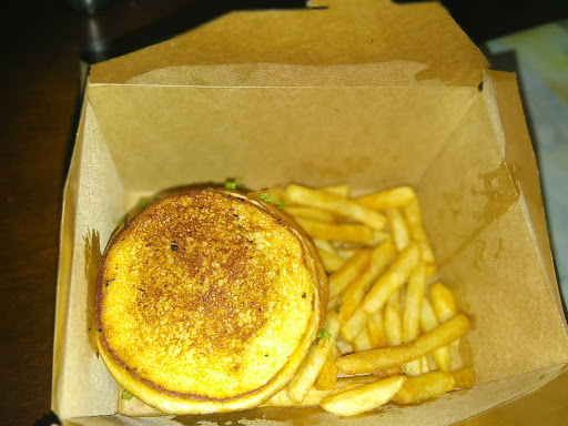 The burger was a burnt, dry piece of gray colored mystery meat . The waffle tough and tasteless. I cant understand why others seem like this stuff. Overall very disappointing and overpriced. My meal of burger and side of fries was well over 10 bucks. There are plenty of other places in vah bch to get a decent meal for that $, look elsewhere for good food.