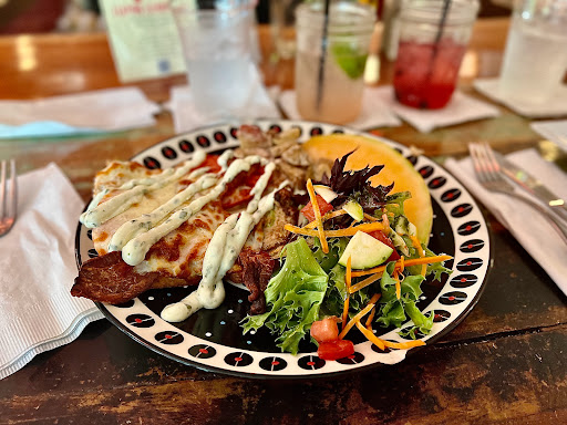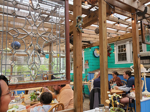 Its amazing. At first glance, its a couple of old houses with cheap decor. Your expectations seem to lower a bit. But once you walk up and look around, its a suprise in every detail. Servers are really friendly and they know how to sell themselves to make you want more. The timing of the food was mediocre. It evens out because while you wait, theres many conversation pieces to catch your attention. Once you receive your food, the presentation is definitely worth the wait. Quiche salad was perfection. Real crab flakes and amazingly flaky golden crust. It was topped with their homemade green salad dressing. Next to that was a very crunchy and fresh salad and some sliced green apples for palate cleansing. Leaping Lizard Grilled Breakfast Burrito (spicy) was packed with perfect portions. Did not taste spicy at all until the second to the last bite but I wasnt mad. Just dont expect spicy. Maybe it was just my serving but it was still delicious. Served with scrumptious Salad and green apple slices. As the waitress took the plates away, she listed the desserts right away which was a great move. Instead of asking a yes or no question, it was choices that makes you think of which instead of the instinctive no thank you. Oatmeal chocolate cookie was huge and came straight from the oven in a big piece of lump. Not very pretty but it was not something you can just try a piece of. That and the maccaroon was worth every crumb.