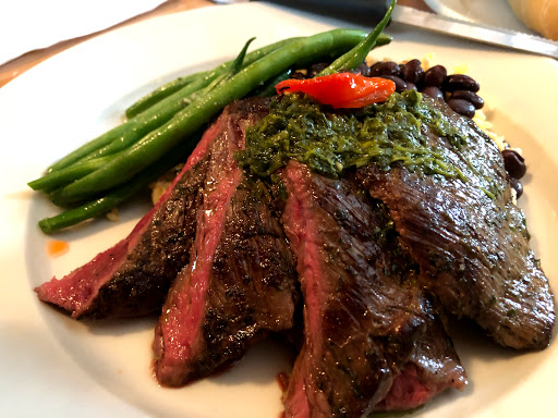 What a wonderful find just one block off the beach on Pacific Avenue. Tucked in on the corner adjacent to a Subway restaurant, the Mojito Cafe had some of the best Latin cuisine weve had. This small but quaint restaurant with its Caribbean decor offers a relaxing and nice respite from all the fast food chain restaurants in the area. The 25 minute wait for a table for two was well worth it. The menu was filled with Latin cuisine favorites. I had the Ropa Viejo entree which was fantastic. The shredded lean beef lightly marinated, over black beans and yellow rice was delicious. We also had the Churrasco con Chimichurri which is a marinated skirt steak with similar rice and beans trimmings. A lean and flavorful cut of steak which is a house standard. This is a great place for a dinner date or a get together with friends and family. The prices are reasonable and the wait and kitchen staff were polite, respectful and professional. I could eat here every night! Dont let the exterior fool you. Come on in for a great meal and a good time.