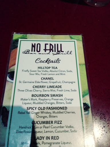 This is one of my favorite restaurants in the Virginia Beach area. The menu is a good size and there are always specials. If youre dining with a group, there will be something to please anyone. I have been eating here for about 5 years and I have NEVER had even close to a bad experience. The food is always really good and the service is always pleasant and on time. On a busy weekend night you may have about a 20 minute wait to be seated but we rarely wait longer than that. This is our go-to place for a nice, relaxed dinner out with great food. We always know we will be happy at No Frill.