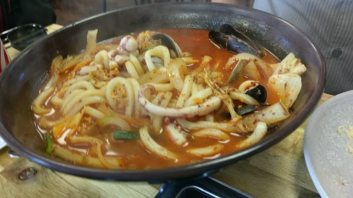 The fodd was awesome (both the seafood and Korean). The sides were tasty with everything youd want... sweet, sour, spicy, nutty, salty. They definitely open up your palate. We got pork belly cooked table side which was awesome. The service was great too. The bulgogi was tasty and tender, and piled high on the plate. The seafood combo we ordered for the kids was hot and fresh. We have nothing but great things to say about our experience here. Well be back soon.
