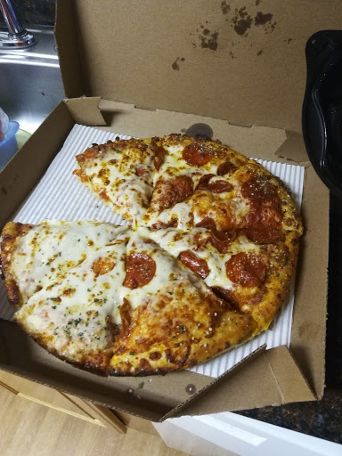 The cheese pizza was cooked perfectly. Unfortunately, half of the sausage and pepperoni pizza was burned like that half was left in the oven. Delivery was 20 minutes past the 35 minute delivery window.