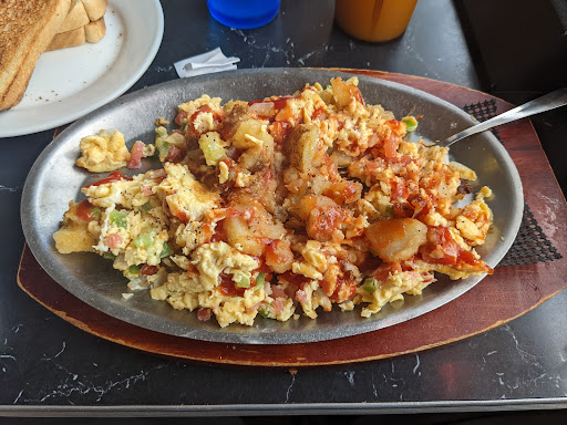 This is what breakfast is supposed to be like! Fast service, good food and plenty of it. 3 eggs over easy on a pile of real fried potatoes with a helping of meat... toast was buttered, that in itself is hard to find. I got checked 4 times in 15 minutes. Id say $10 for a great breakfast was a pretty good deal. Wipe the egg yolk off your plate with buttered toast GOOD!