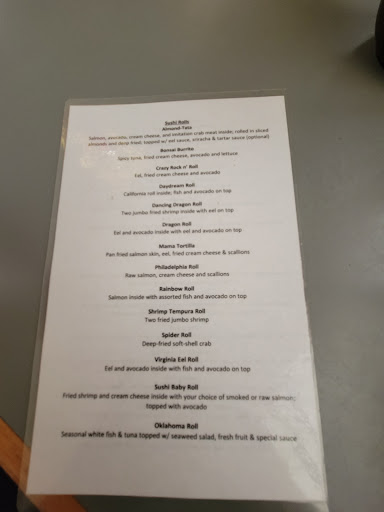 I have been to over a dozen sushi restaurants here in Virginia Beach and this place is the best. The portions are not what you would expect, they are very hearty. The menu items are creative in both name and flavor. Mr. Lee takes the time to ask you what flavors you like in your sushi and often times will create a dish not on the menu to satisfy your cravings. I recommend the sushi poppers, salmon good to go, and the chum roll.
