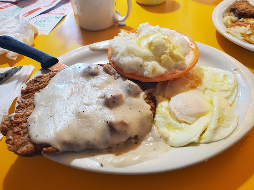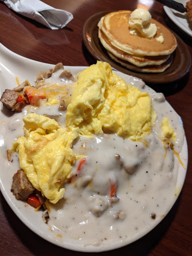Place was busy for some reason, not sure why. I ordered biscuits and gravy. The gravy tasted a little pasty and I didnt like the sausage at all. The server was really busy and we had to wait awhile for everything including our check but she was nice. The manager was also nice. They had really good coffee.
