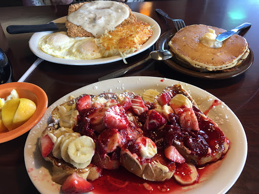 The past few times I have been here have been less than stellar. Despite not being busy it still seems to take forever for your food yet there are plenty of workers just standing around chatting to each other. The crepes are rubbery and the oatmeal was obviously microwaved as it was the consistency of glue. I had to ask for more hot water to thin it out and it took almost the whole kettle. The "fresh" fruit bowl was not fresh and seemed to have been sitting out for a while. Even the pie is not like it used to be. There are plenty of other restaurants around that serve breakfast and this one is no better than any of the others. It is also difficult to get in and out of the parking lot depending in where you are coming from and where you are going.