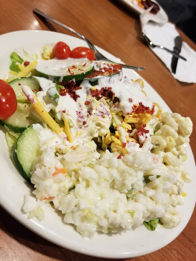 Salad bar was hot, filled frequently&enjoyable. Way to go back of house! However upon entering the seating area a large party was loudly disgussing issues with their check& server maybe it should have been a clue- not sure who the team leader was Friday night but I have never in years seen the restaurant such a mess. Tables where covered in dirty dishes. Groups of servers looked overwhelmed&covered in sweat. They where all standing in the drink area doing nothing productive. Our server upon taking our order must have decided she didnt feel like working anymore..?(no 2bite check back)..I had already located silverware for our group myself, as she nor the hostess ever brought it. A completely different server wound up refilling our drinks&asking if the food was ok. Pathetic service Friday night&Im really disappointed. With the exception of the one attentive server (Ella or Ema I think it was?) who I happily tipped instead. I would possibly have understood IF the restaurant had been packed but it was not even close to half way full...its still unclear to me what all those servers where doing?