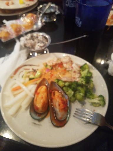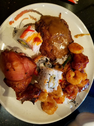 Service and atmosphere great. Very clean. Tonight though, very dried out salmon, under cooked bacon wrapped shrimp, Peking chicken was old, fresh broccoli and chicken had cold chicken. This is not the norm for this place. Normally the food is very good.